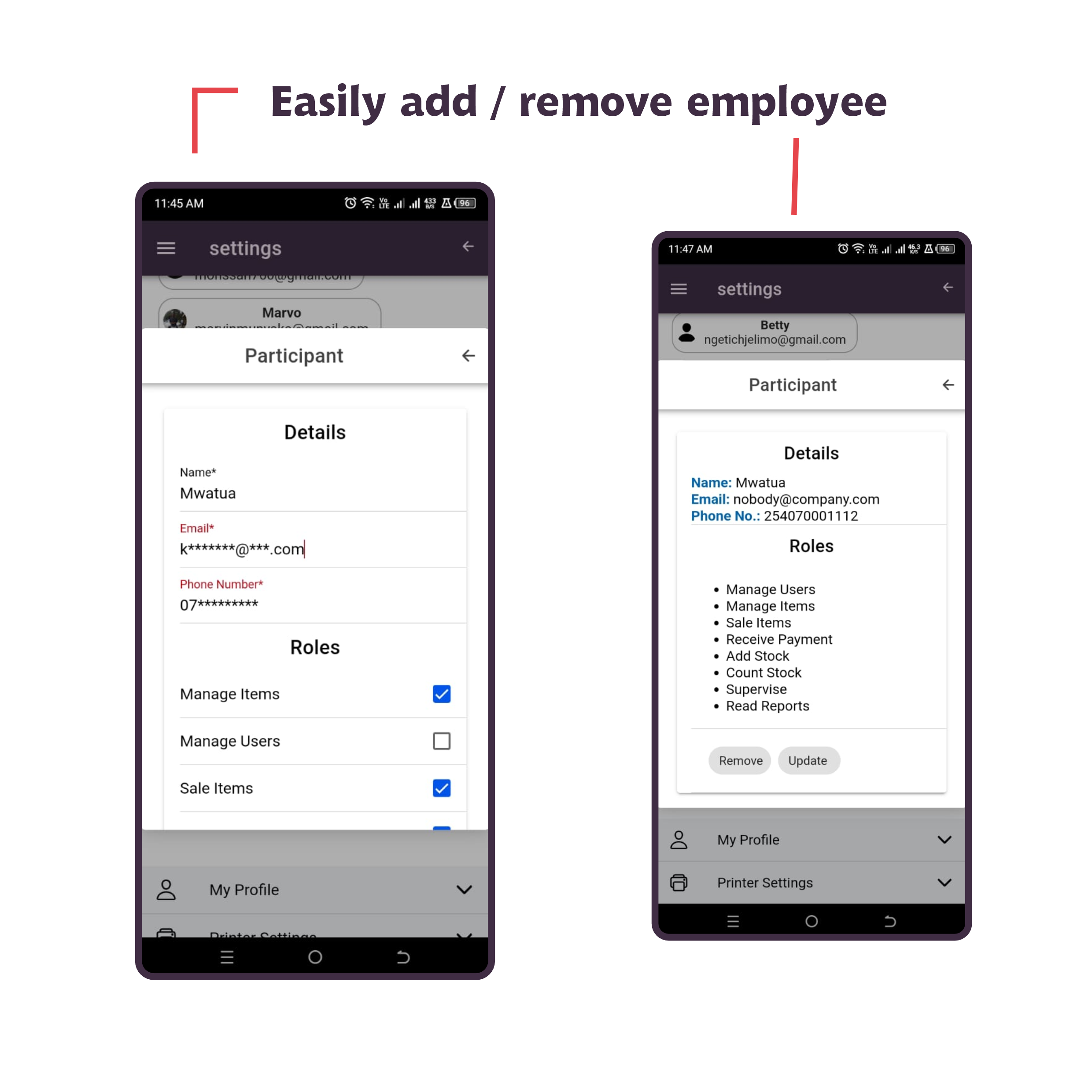 In Mtaabizz, you can easily add or remove an employee. Grant them relevant permission and also edit them. You have full control.